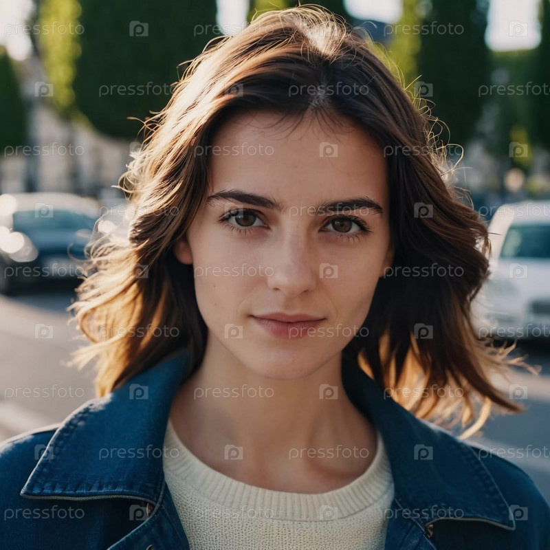 Молодая брюнетка 25 лет уверенно стоит на парижской улице в сумерках, мягкие городские огни освещают ее нежные черты, отражая спокойствие и городское очарование. Генеративный ИИ