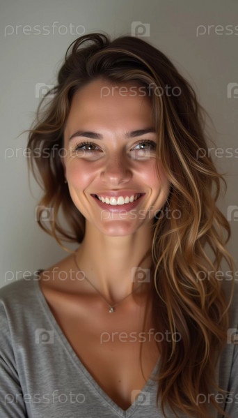 Улыбающаяся молодая красивая женщина кавказской внешности из Франции, воплощающая тепло и радость. Ее расслабленное поведение и беззаботное выражение лица передают ощущение счастья и доступности. Генеративный ИИ