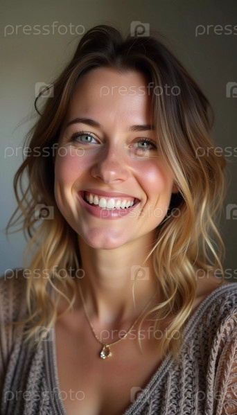 Улыбающаяся молодая красивая женщина кавказской внешности из Франции, воплощающая тепло и радость. Ее расслабленное поведение и беззаботное выражение лица передают ощущение счастья и доступности. Генеративный ИИ