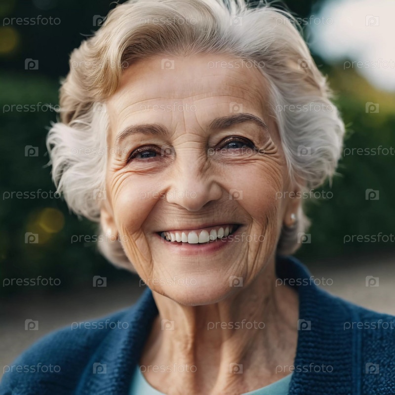Утонченная улыбающаяся пожилая француженка на открытом воздухе. манера поведения раскрывает жизненный опыт и размышления, воплощая изящество и мудрость. ухоженная женщина 70 лет с седыми волосами