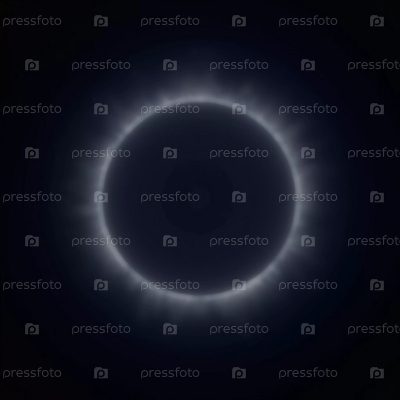 Во время полного солнечного затмения луна полностью закрывает солнце, открывая потрясающую корону. Темное небо и эфирный свет создают захватывающий момент для зрителей. Генеративный ИИ