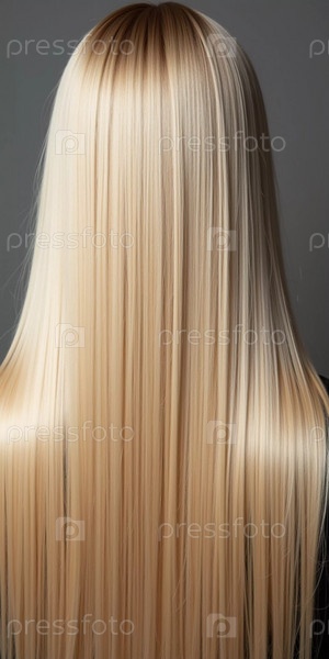 Гладкие, прямые светлые волосы элегантно расстегиваются по спине, подчеркивая их здоровый блеск и равномерный цвет, освещенные мягким освещением, создавая эффектный образ