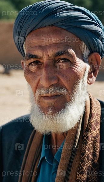 Пожилой мужчина из Афганистана демонстрирует свое обветренное лицо, отражающее годы мудрости и стойкости на скромном фоне природы, олицетворяя богатую культуру его родины. Генеративный ИИ