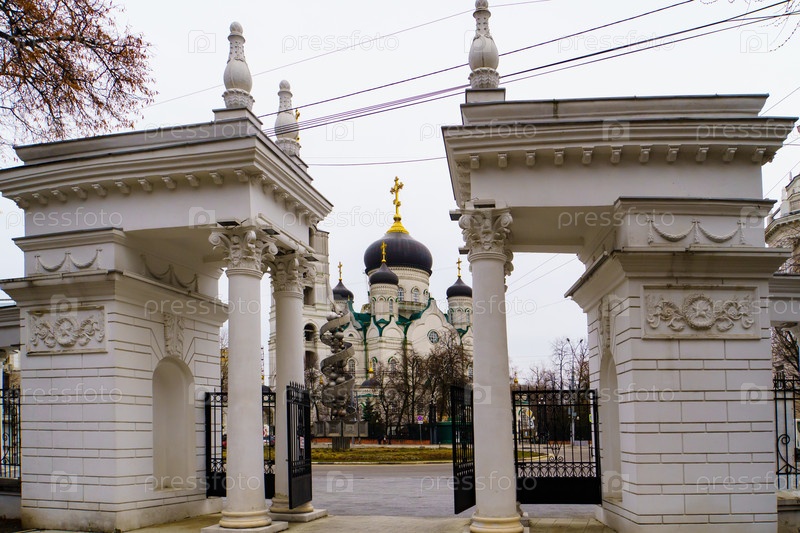 Городской пейзаж. Благовещенский кафедральный собор. Вид из парка "Орленок". Воронеж