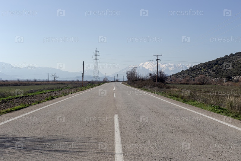 Сельская дорога с видом на горы и поля