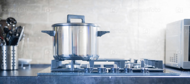 Кухонная газовая плита со стеклянной столешницей крупным планом