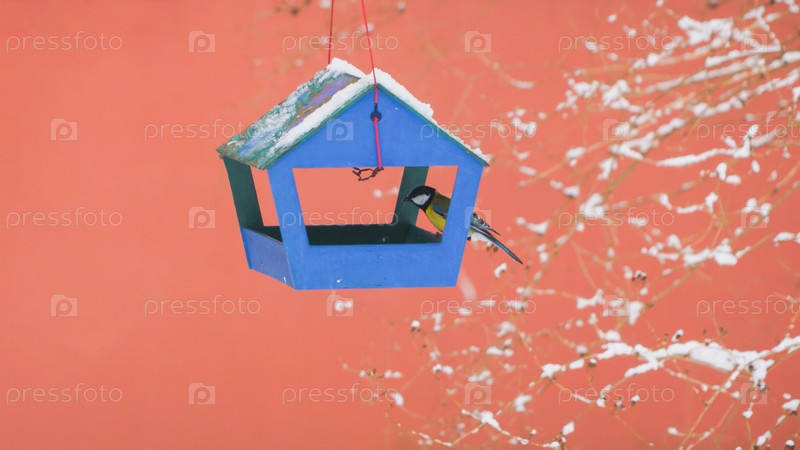 Птицы в кормушке холодным зимним днем