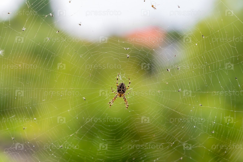 Большой паук сидит в паутине