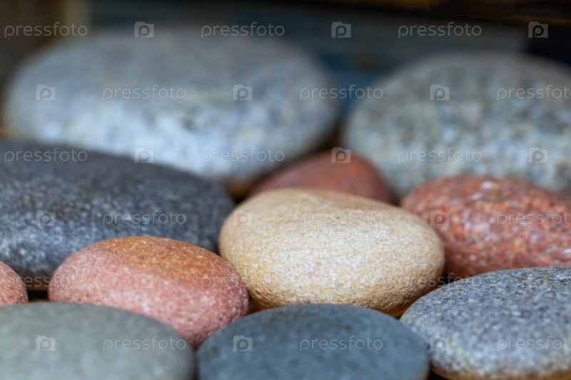 Разноцветные декоративные камни, крупный план, размытый фон