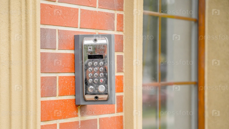 Домофон с кнопками возле двери, крупный план