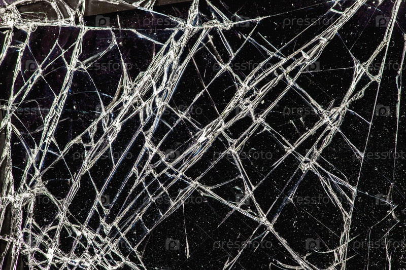 Белое треснувшее стекло с пылью на черном фоне, текстура
