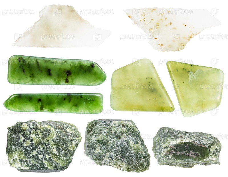 Различные образцы сырых минералов нефрита изолированы