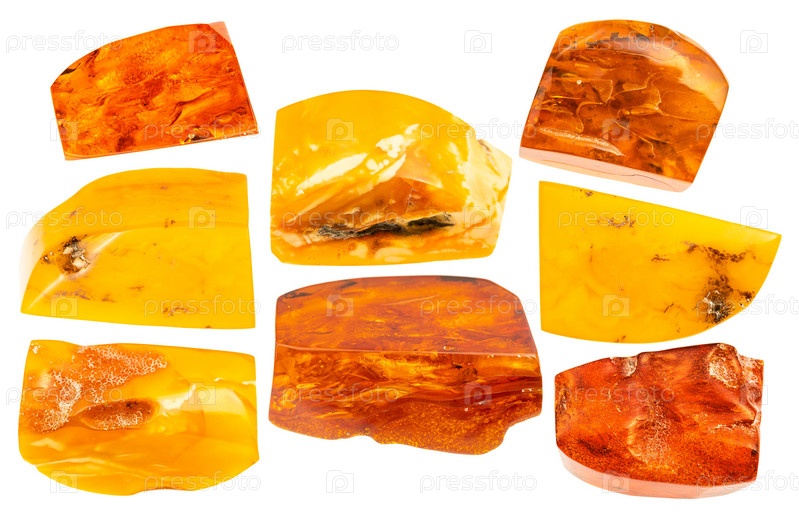 Различные образцы сырого янтаря минералы изолированы