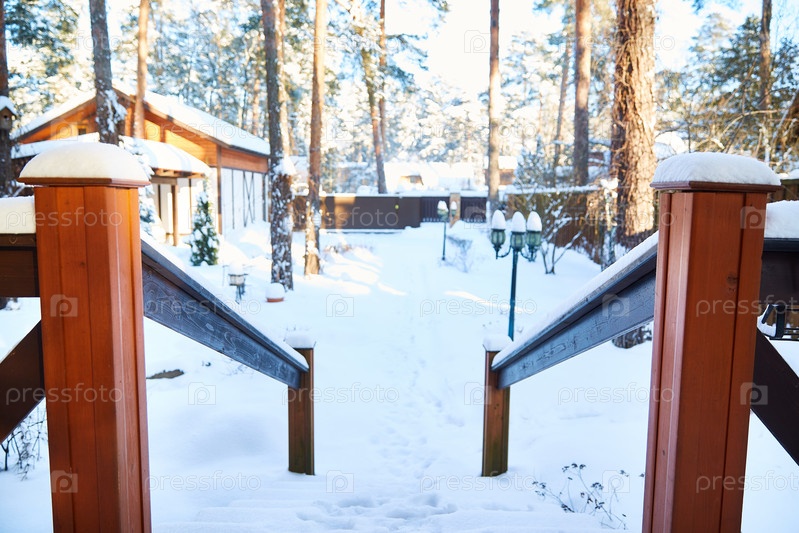 Зимний вид с крыльца или патио дома