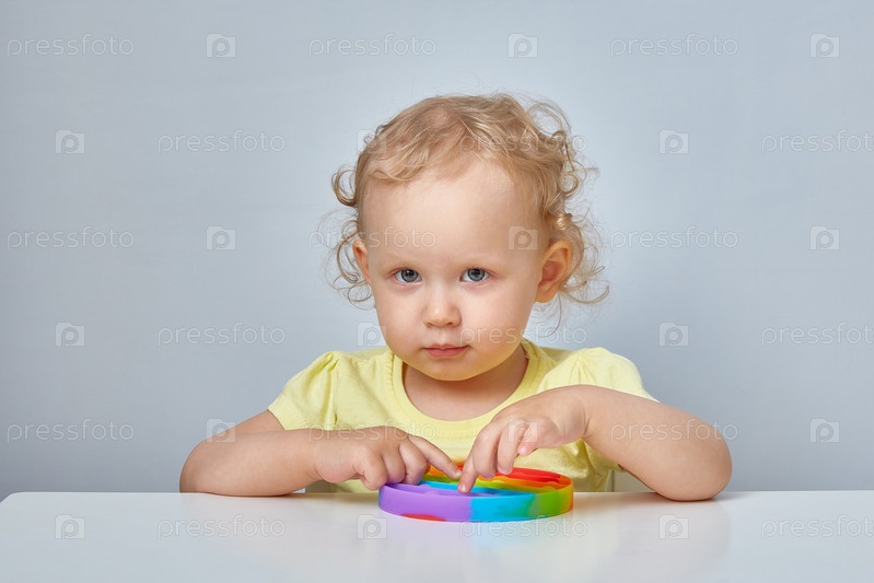 Популярная антистресс-игрушка Pop It. Ребенок играет с игрушкой Pop It Fidget. Счастливое детство, популярные развивающие игры