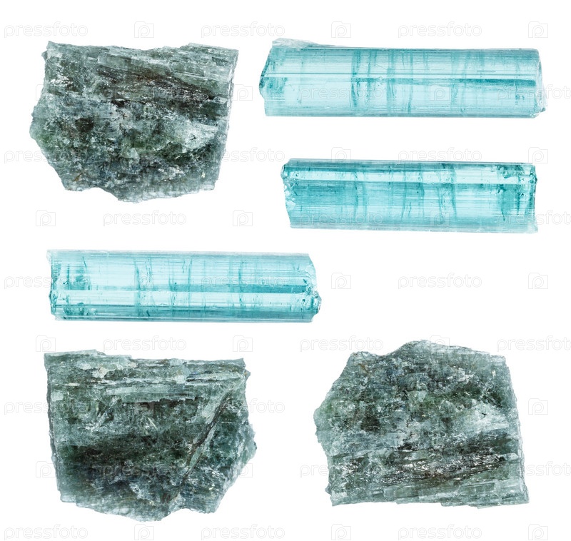 Различные образцы сырого минерала индиголита изолированы
