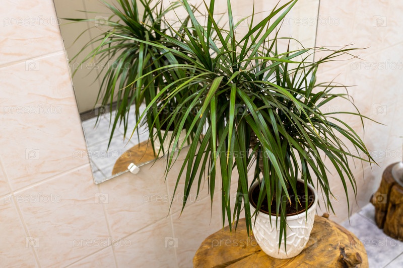 Комнатное растение в цветочном горшке рядом с настенным зеркалом