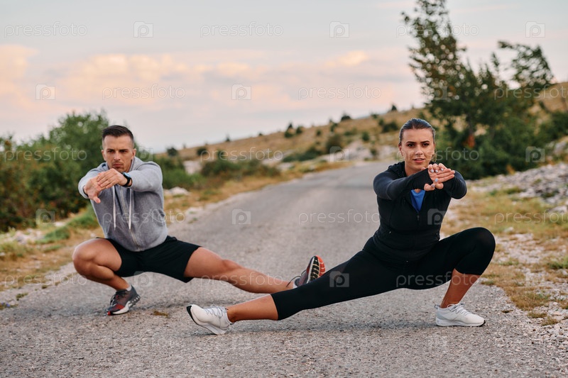 Романтическая пара растягивается после пробежки