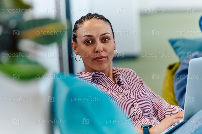 Современный программист обсуждает будущие бизнес-проекты с коллегами в современном офисе стартапа
