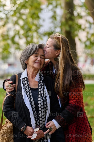 Сердечные объятия: дочь поддерживает свою мать в прекрасный осенний день