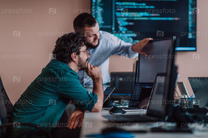 Программисты, погруженные в тесное сотрудничество, усердно трудятся вместе над решением сложных проблем и разработкой инновационных мобильных приложений с безупречной функциональностью