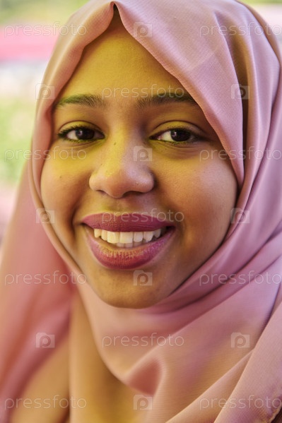Портрет радостной ближневосточной девушки в хиджабе крупным планом