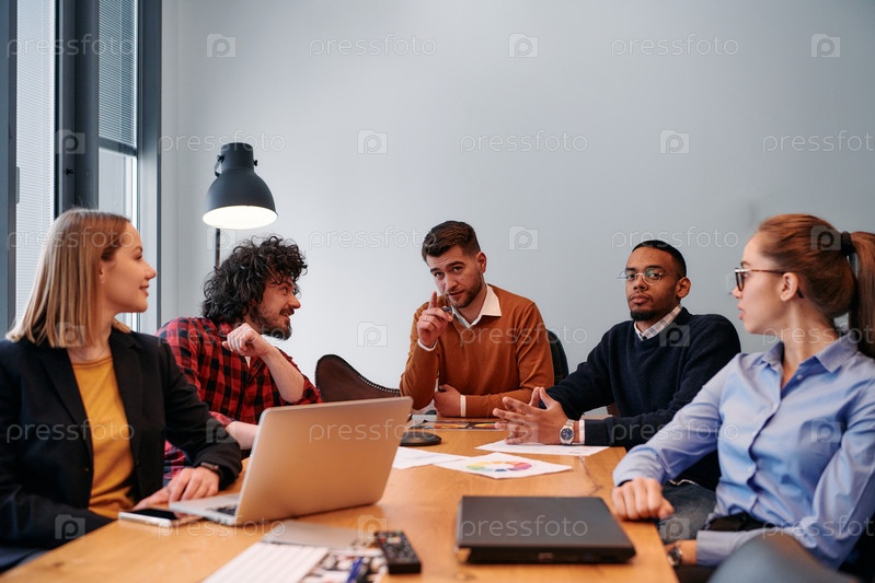Динамичная предпринимательская команда, разрабатывающая стратегии проектов на встрече в современном офисе