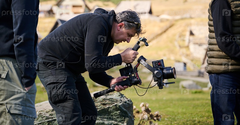 Опытный видеооператор, оснащенный профессиональным оборудованием, улавливает суть красоты природы, мастерски документируя живописный ландшафт в кинематографическом шедевре, отражающем гармоничное сочетание технологий и дикой природы