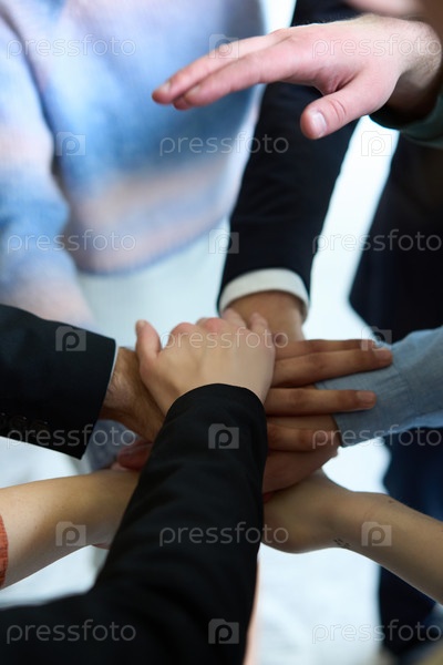 Вид сверху на деловых людей, взявшихся за руки в круг, символизирующий единство, сотрудничество и общий успех на рабочем месте