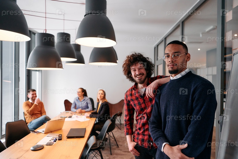 Афроамериканские бизнесмены и их коллеги в современной офисной обстановке