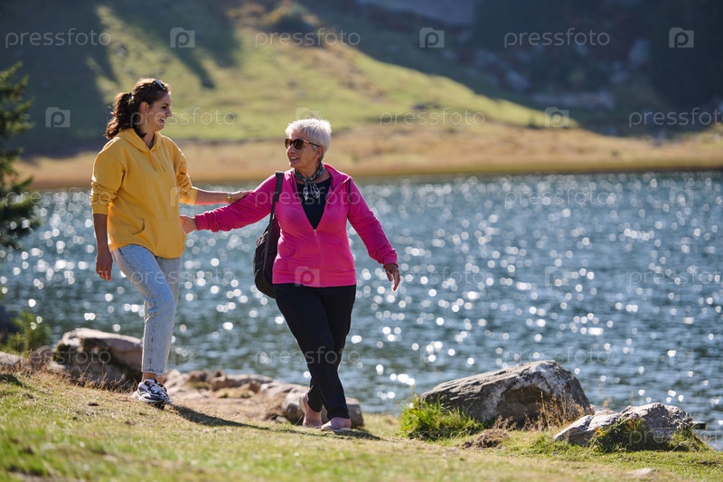 Семья разделяет прекрасные моменты с друзьями на фоне потрясающих пейзажей гор, озер и извилистых троп, пропагандируя здоровый образ жизни и радость семейных уз в объятиях красоты природы