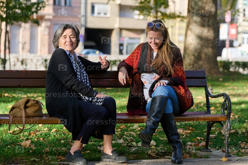 Обнимая поколения: любовь и поддержка дочери для ее пожилой матери в солнечный день в парке