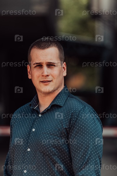 Портрет современного мужчины, излучающего уверенность и стиль, на фоне природы, демонстрирующий его харизму и модную манеру поведения