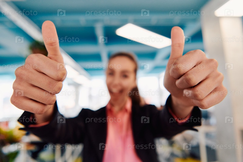 Крупный план рук, улыбающаяся деловая женщина, делающая жест кадра в современном ярком коворкинге открытого пространства стартап-офиса