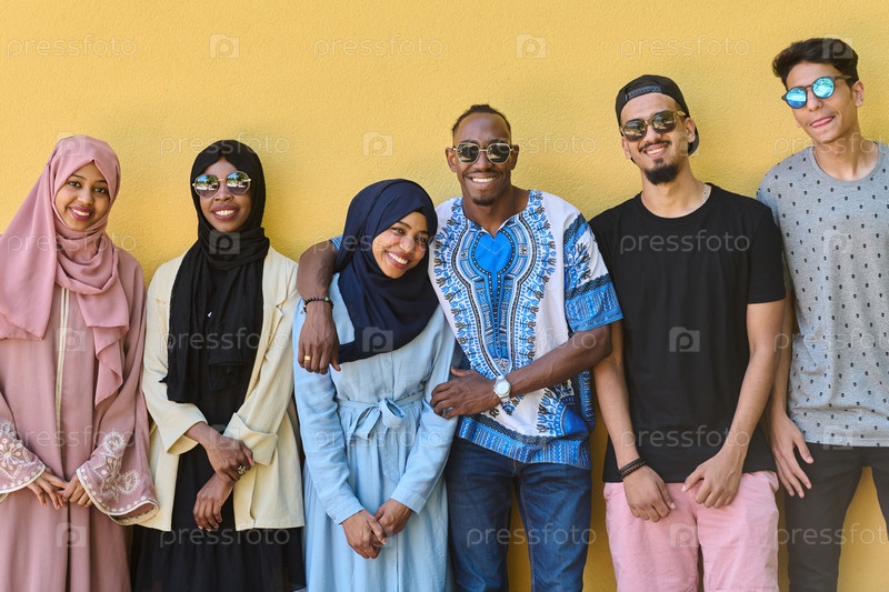 Городское единство: яркое разнообразие. Люди перед желтой стеной