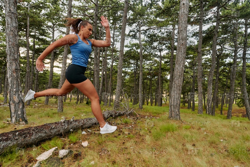 Бесстрашная женщина преодолевает деревянные препятствия в опасной лесной местности