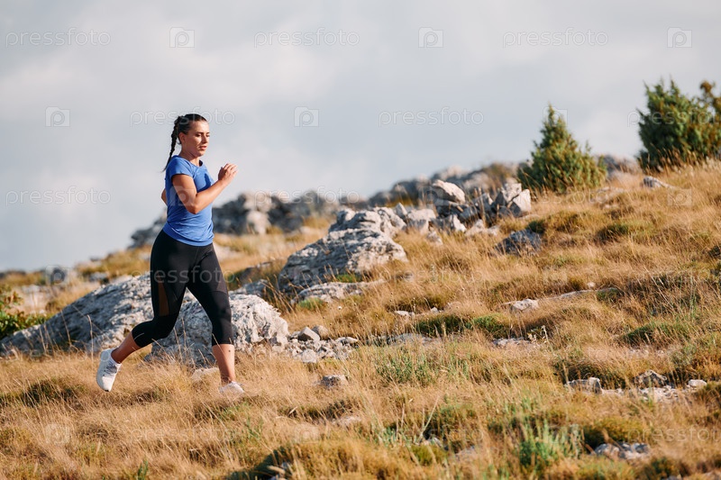 Воодушевленный бегун наслаждается красотой природы на спокойной утренней пробежке