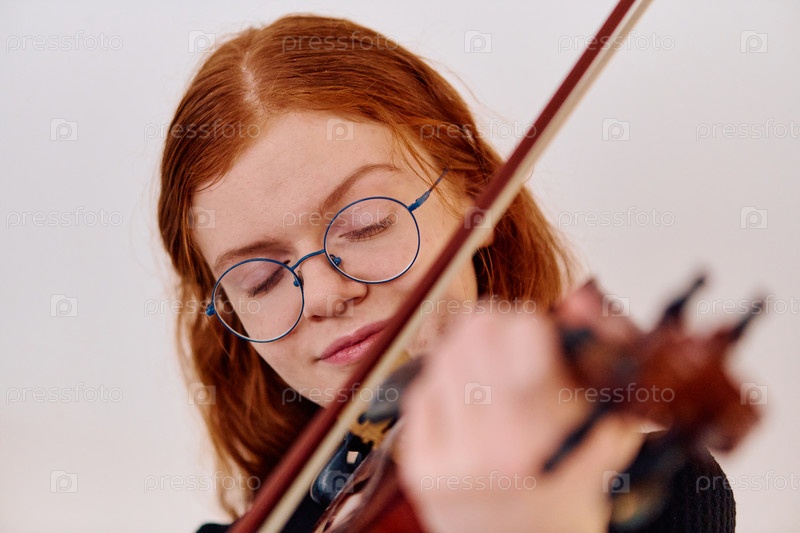 Потрясающая рыжеволосая музыкантша позирует со скрипкой на пленительном портрете