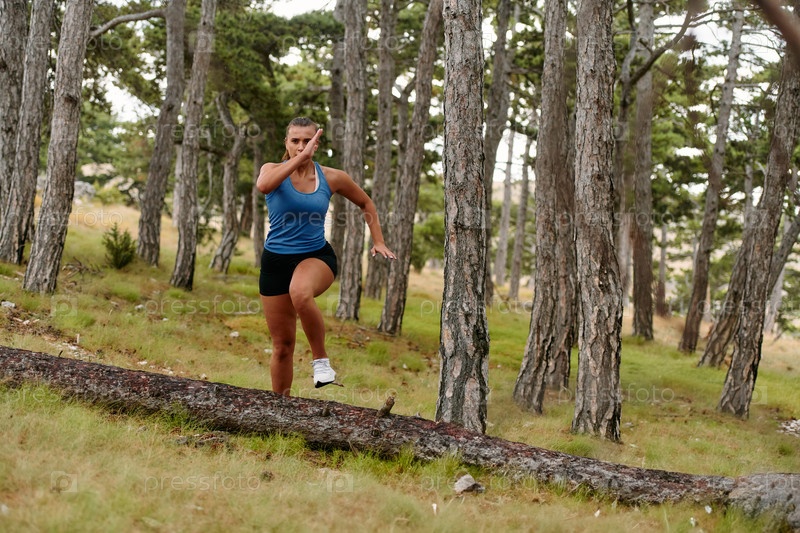 Бесстрашная женщина преодолевает деревянные препятствия в опасной лесной местности