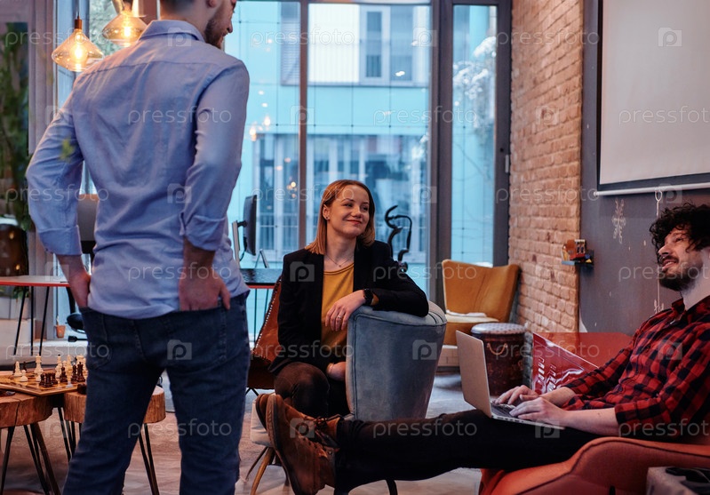 Коллеги по офису наслаждаются совместным перерывом