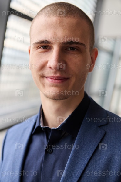 Молодой успешный предприниматель в современной обстановке конференции