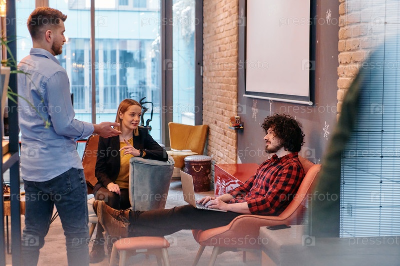 Коллеги по офису наслаждаются совместным перерывом
