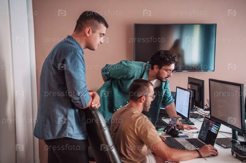 Программисты, погруженные в тесное сотрудничество, усердно трудятся вместе над решением сложных проблем и разработкой инновационных мобильных приложений с безупречной функциональностью