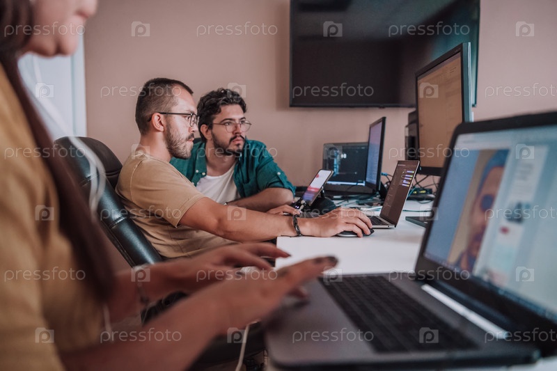 Программисты, погруженные в тесное сотрудничество, усердно трудятся вместе над решением сложных проблем и разработкой инновационных мобильных приложений с безупречной функциональностью