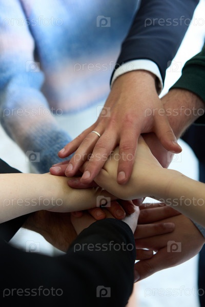 Вид сверху на деловых людей, взявшихся за руки в круг, символизирующий единство, сотрудничество и общий успех на рабочем месте