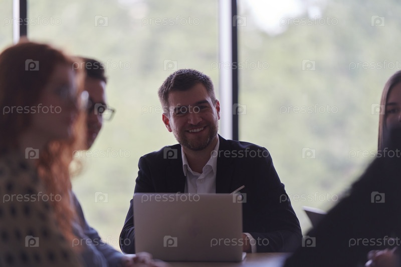 Разнообразная многонациональная бизнес-команда участвует в совместной встрече, обсуждая стратегии и решения в современной офисной обстановке