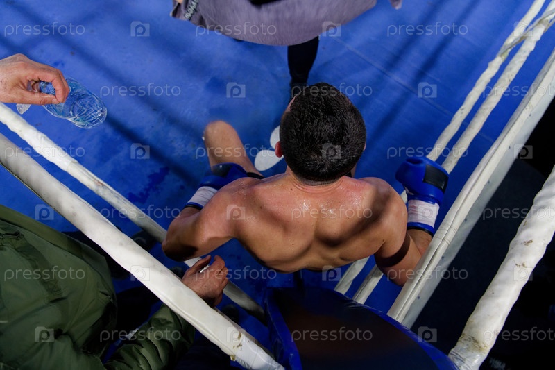 Вид сверху: загнанный в угол боксер получает стратегические советы от тренера во время напряженного боя