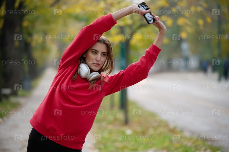 Спортивная молодая женщина делает вдох и расслабляется после пробежки и растяжки. Тренировка женщины и упражнения для тренировки на улице