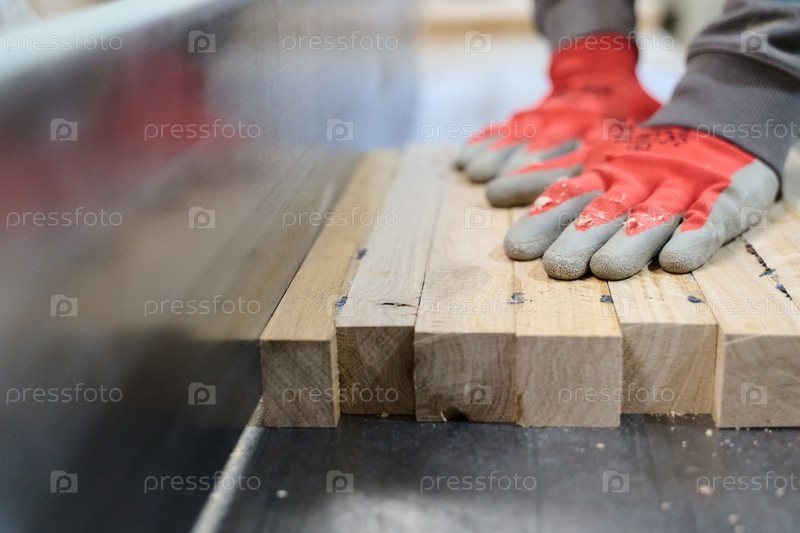 Крупный план рабочего, аккуратно режущего и строгающего деревянные детали для мебели в деревообрабатывающей промышленности