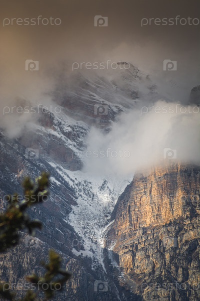 снежные горы в облаках